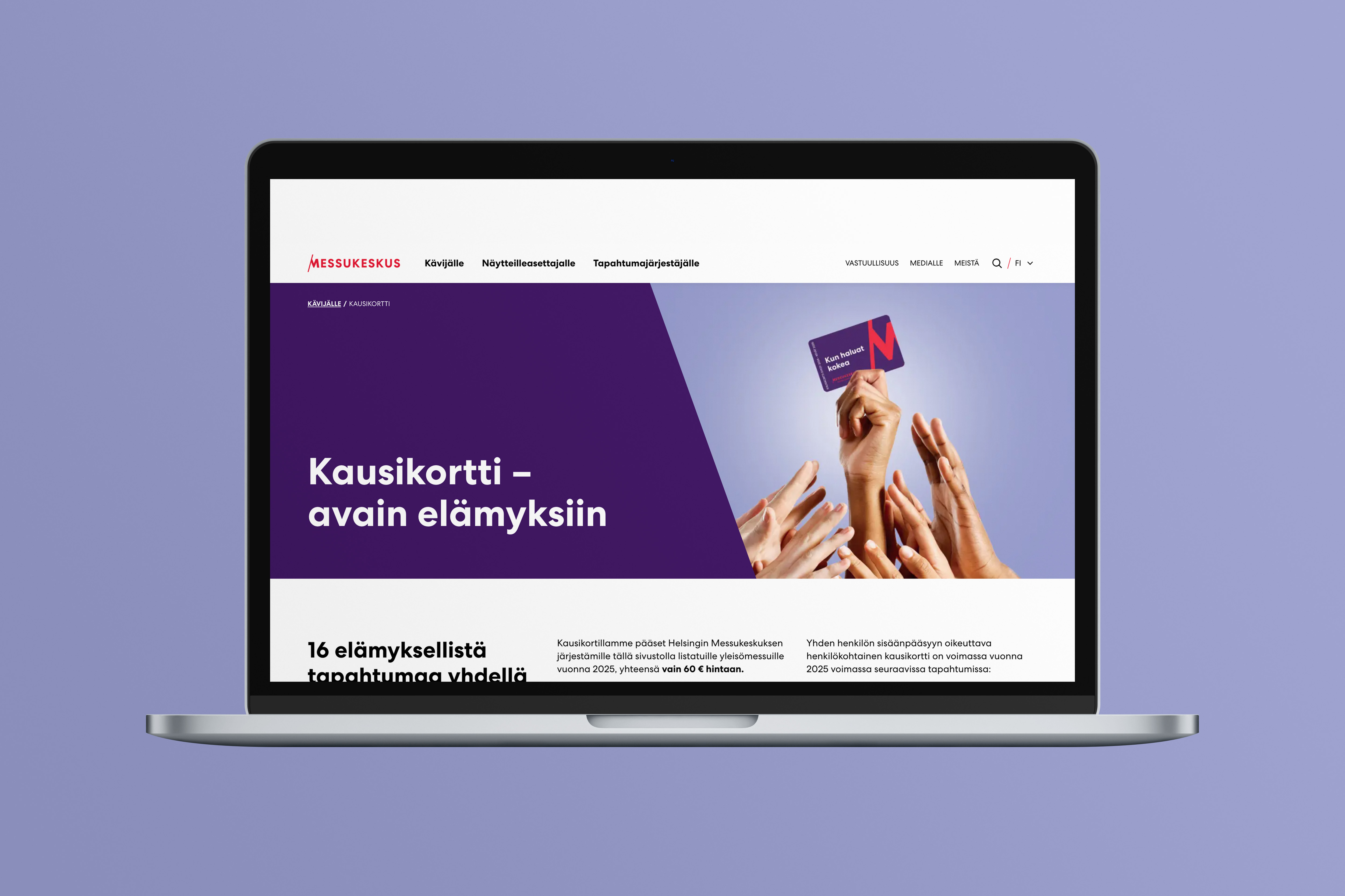 Messukeskuksen kausikortin päivitetty markkinointimateriaali nettisivuille, verkkokauppaan sekä sosiaaliseen mediaan.